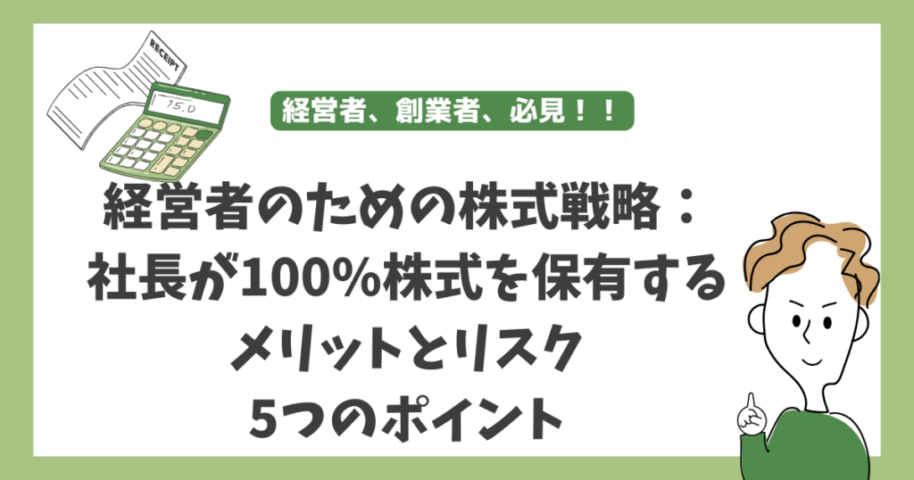 【決定版】経営者のための株式戦略:社長が100%株式を保有するメリットとリスク 5つのポイント