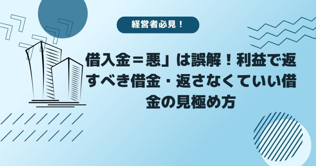 借入金は経営者にとって避けて通れないものですが、すべてを「利益で返すべきもの」と考えると、無駄なプレッシャーを抱え、経営が苦しくなります。