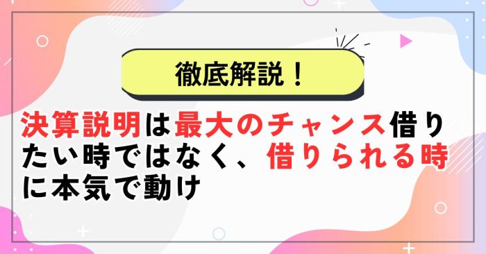【経営者必読】決算説明は最大のチャンス借りたい時ではなく、借りられる時に本気で動け